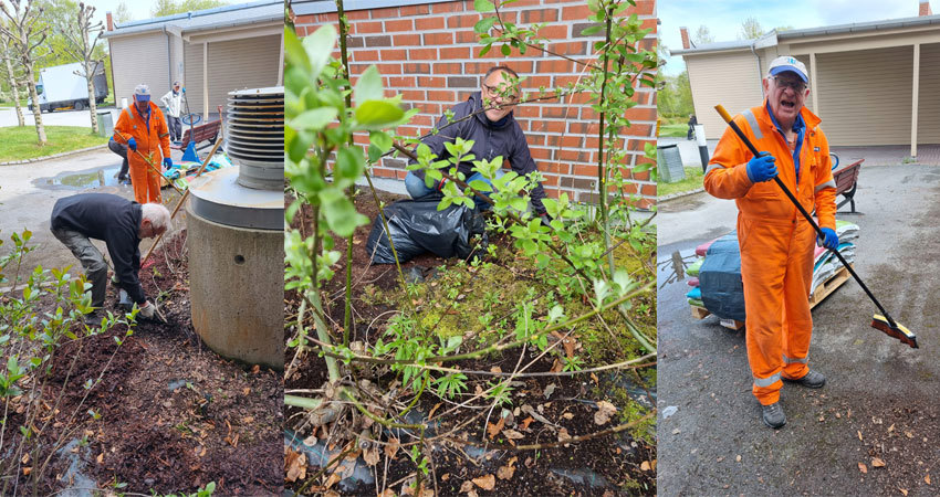 Kjekt med dugnad! Også i år har klubben stilt opp og bidratt til å gjøre det pent rundt Spjelkavik Omsorgssenter.
