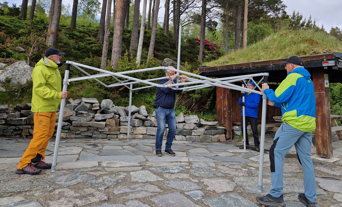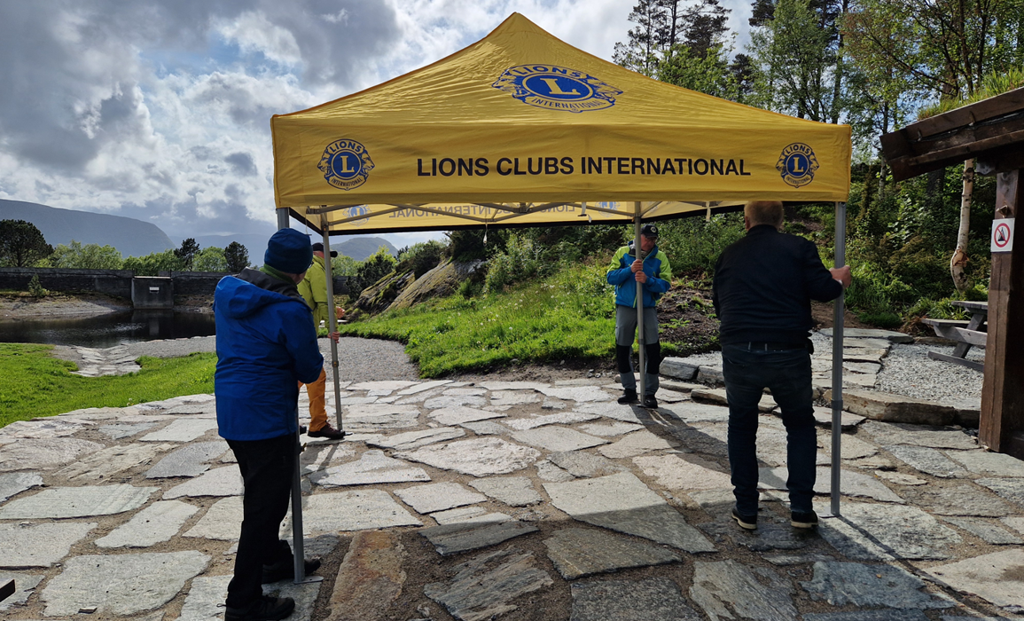 Vi fikk også satt opp Lionsteltet som var benyttet under 100-års markeringen. Det er fullt brukbart, og vi skal se på om det kan suppleres med en egen vegg med annen tekst og logo for vår klubb. Det er sona som «eier» teltet og det vil framover bli lagret på Jentekolonien.
